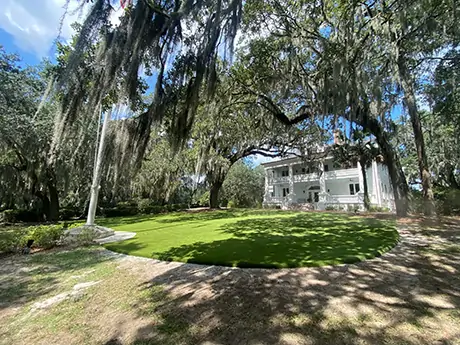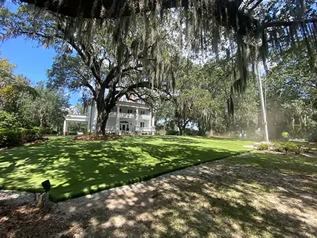 Built in 1905 for the Commandant of the Charleston Navy Yard, the historic Admiral’s House has been transformed into a stunning wedding and event venue. To enhance the outdoor space, artificial grass was installed, creating a beautiful, low-maintenance lawn perfect for ceremonies, receptions, and gatherings—blending timeless charm with modern functionality.
